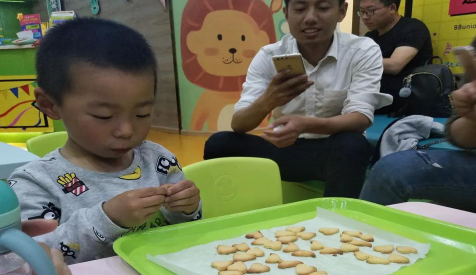 看看那位家长五官灵活,先吃到饼干